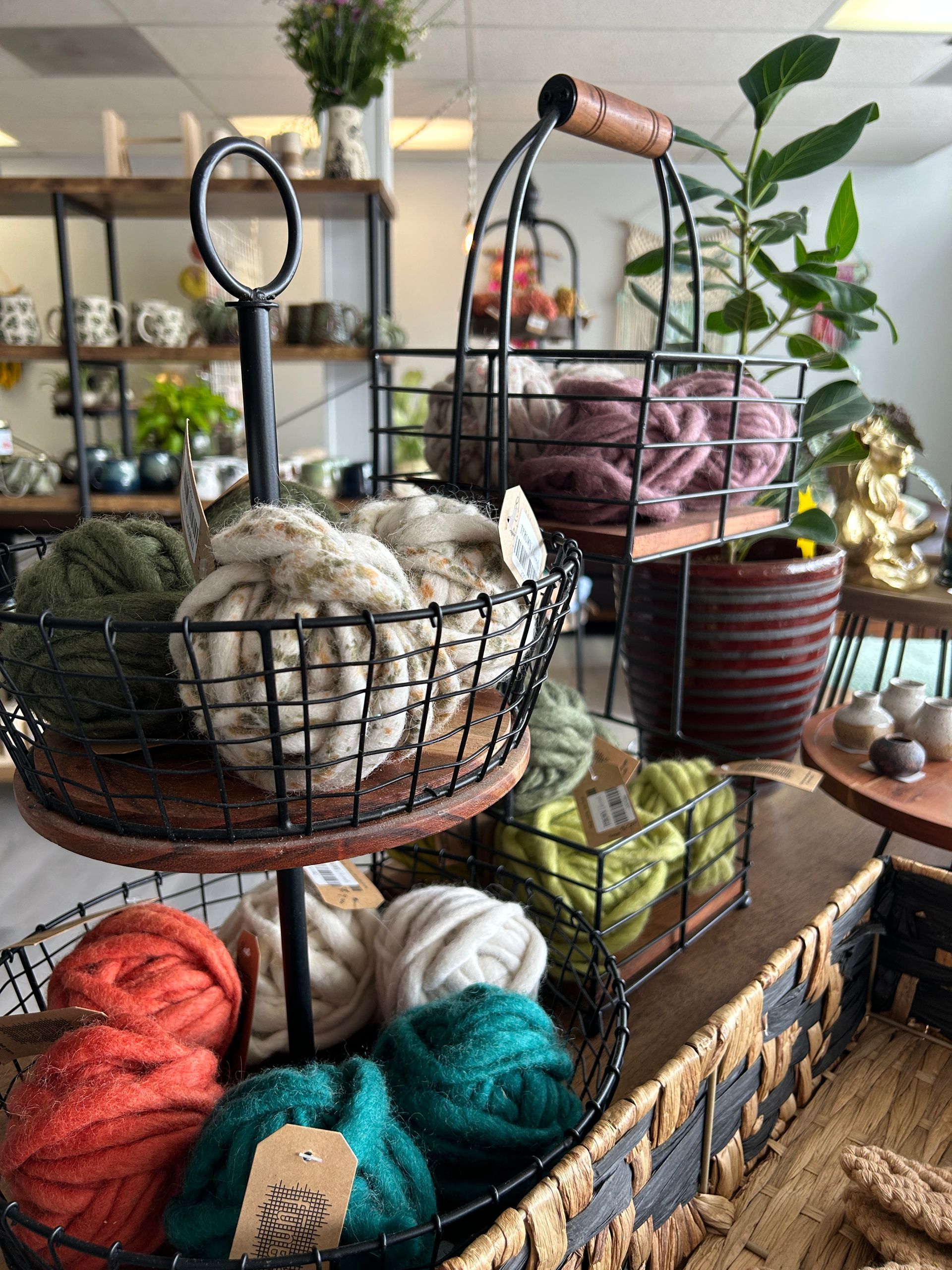Megan (Dirty Clay Co.) is a potter who focuses on textures and color to create unique fun & functional creamic pieces. Stacey (Earth Knots) is a talented fiber artist specializing in macrame & weaving. Together Megan & Stacey are Thrown Threads, a business formed from friendship & a shared passion to create a space for art & community. Megan & Stacey met in 2022 when both Dirty Clay Co. & Earth Knots were part of the 2022 Batavia Boardwalk season. They started Thrown Threads in 2023 and the rest is history!